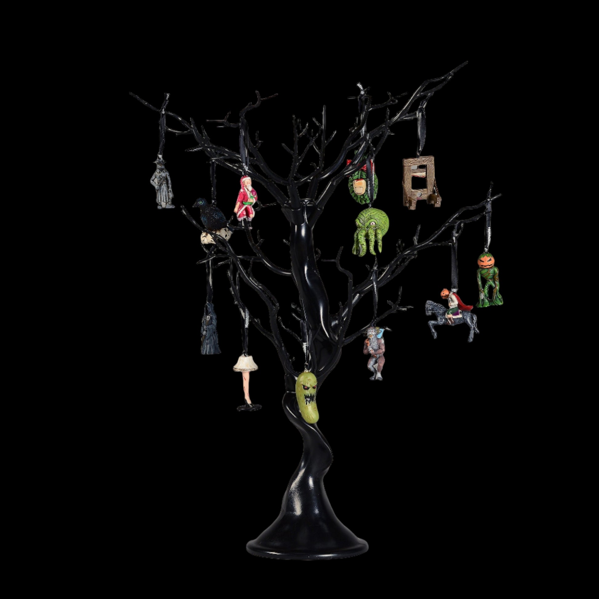 Horrornaments has made it easy to flaunt your spookiest ornaments all year long! With the Horrornaments Mini Tree, you can fit all of your mini ornaments into one haunting display. Strong branches can hold your heaviest ornaments, but yet it remains light for effortless transportation. For storage, each branch can easily detach to be put away, if needed.