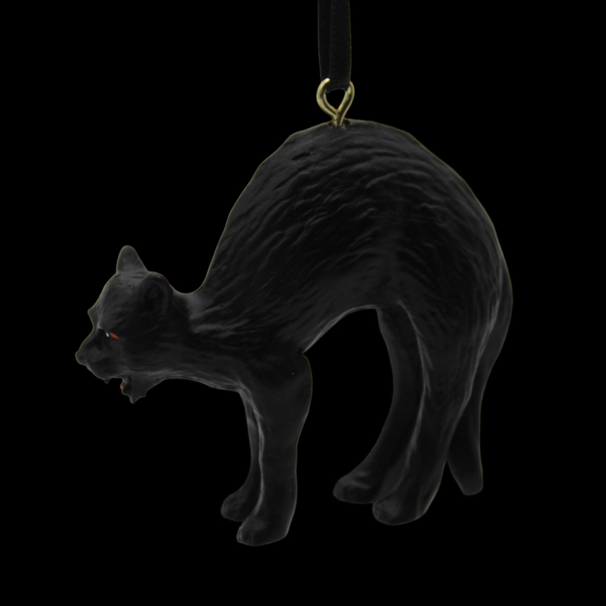 Look out! Too late, this black cat has already crossed your path, bringing misfortune to all that come across him. The perfect accompaniment to a witch’s tree, this fierce feline sits ready to pounce on any unlucky and unsuspecting passerby.