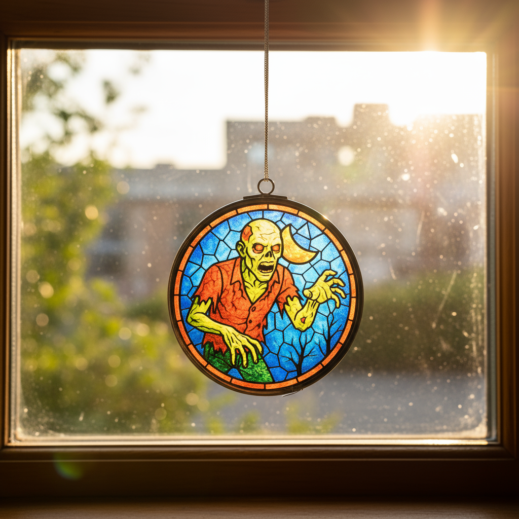 When the moon rises, so does he. Undead Light captures the eerie glow of a midnight graveyard — a rotting ghoul clawing his way through a cracked blue sky beneath a sickly crescent moon. Even at half the size, this mini version brings big horror energy when the light shines through.