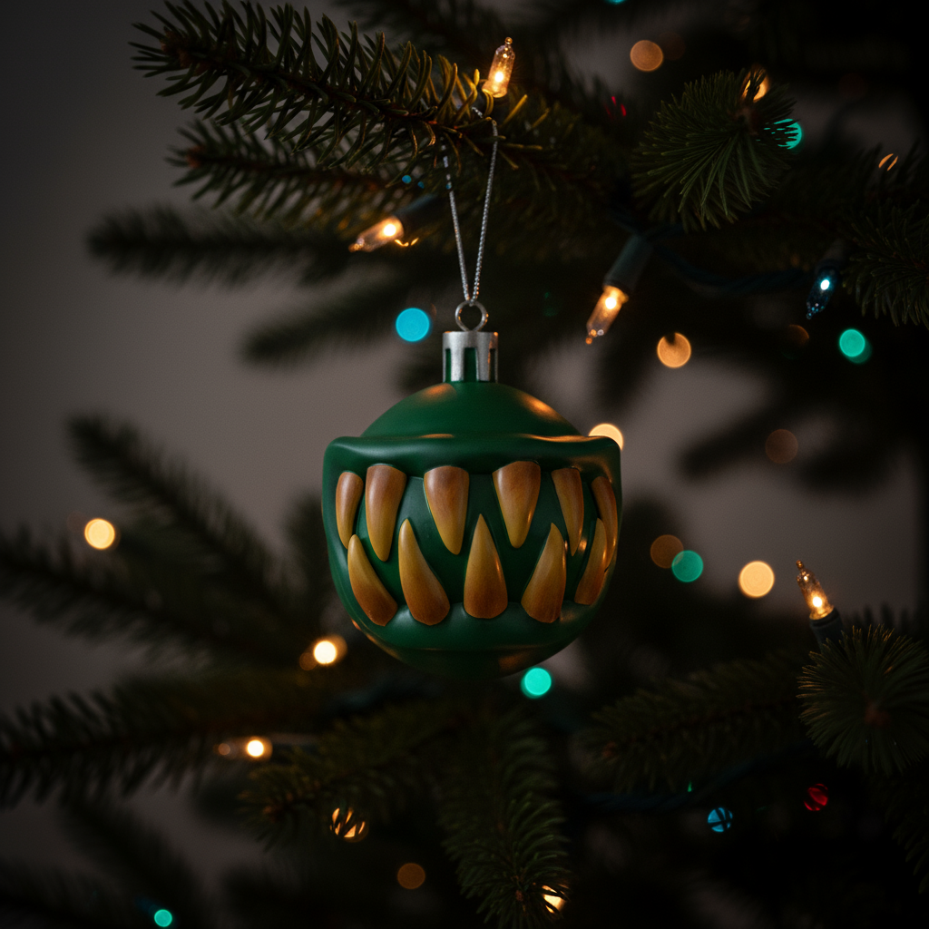 No eyes. No nose. Just rows of teeth, and a hunger that never ends. Monster Ball 3 is pure nightmare—silent, still, and always smiling. They say if you stare too long, it starts to pulse. Like it’s breathing. Like it knows you’re there. Hang it… if you’re feeling brave.