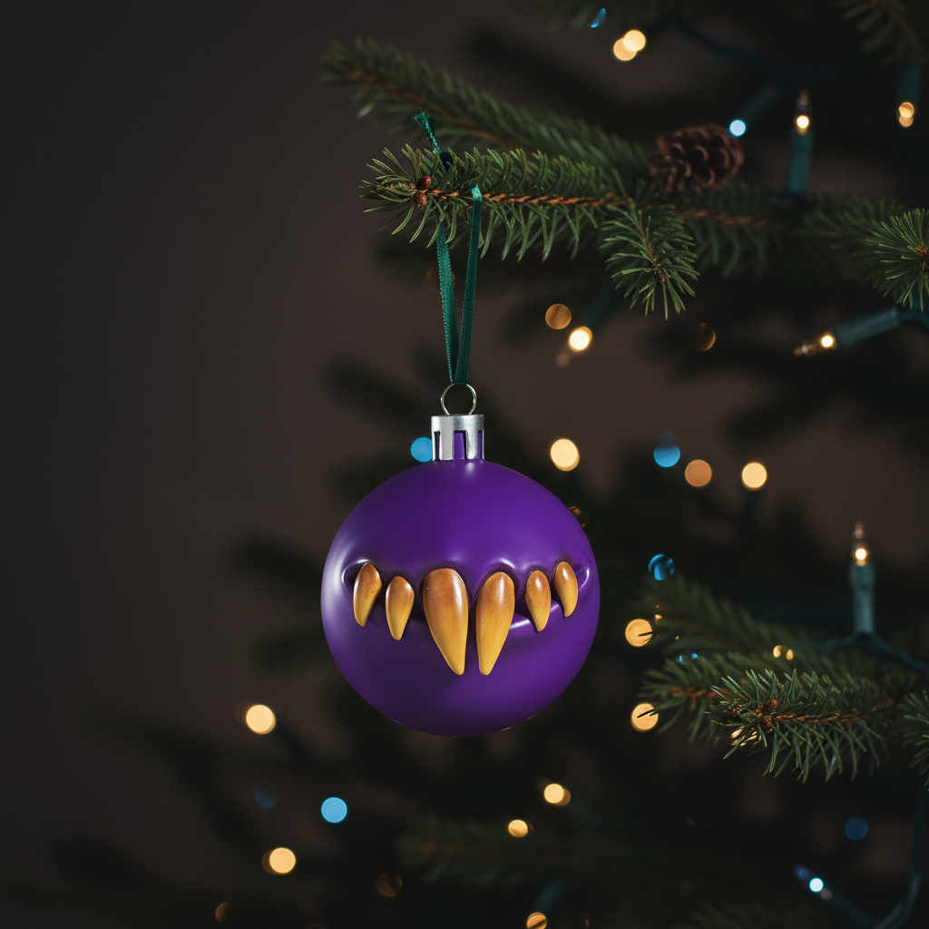 The second one showed up gnashing—fangs sharper, hunger stronger. Monster Ball 2 doesn’t smile… it snarls. Hidden among your ornaments, it waits for the lights to go out. Then, it feeds. Some decorations sparkle—this one stalks. Don’t turn your back on the tree.