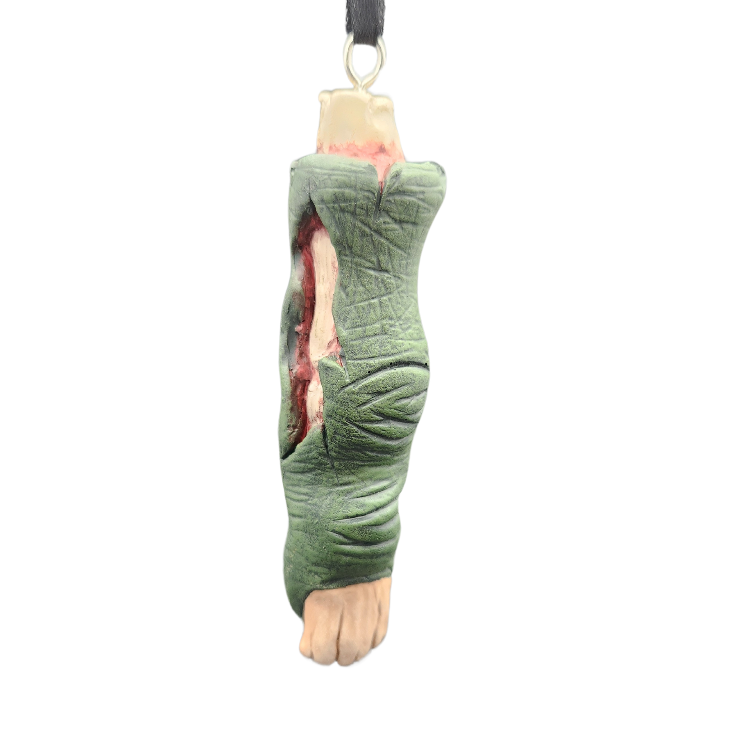 He was reaching for help… but help came too late. Now all that’s left is a rotting reminder of the chaos he crawled through. Torn, tattered, and twitching with undeath, the Zombie Finger points to one thing—no one escapes the outbreak. Hang it up before it walks off on its own.